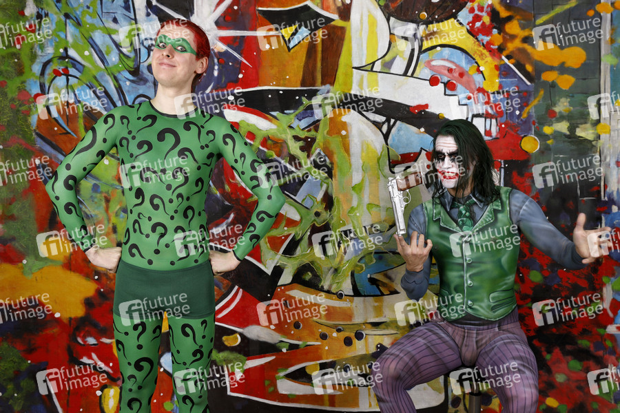 GEEK ART - Bodypainting and Transformaking: Joker meets Riddler Photoshooting mit Patrick Kiel als Joker und Paul Skupin als Riddler im Atelier Düsterwald in Hameln. - Ein Projekt des Fotografen Tschiponnique Skupin und des Bodypainters und Transformakers Enrico Lein