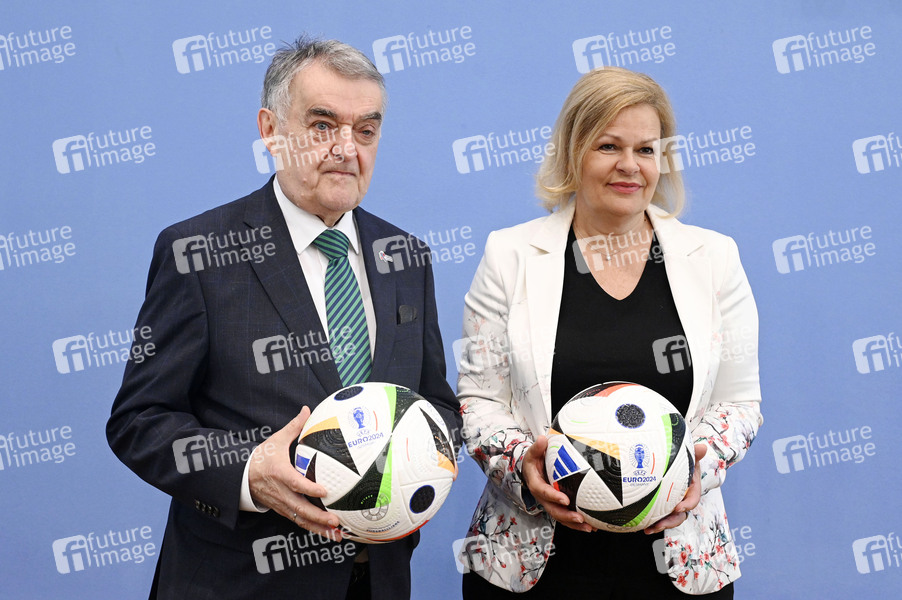 Herbert Reul und Nancy Faeser bei der Bundespressekonferenz 10 Tage vor der EM: Vorbereitung von Bund und Ländern für Sicherheit und Zusammenhalt im Haus der Bundespressekonferenz. Berlin, 04.06.2024