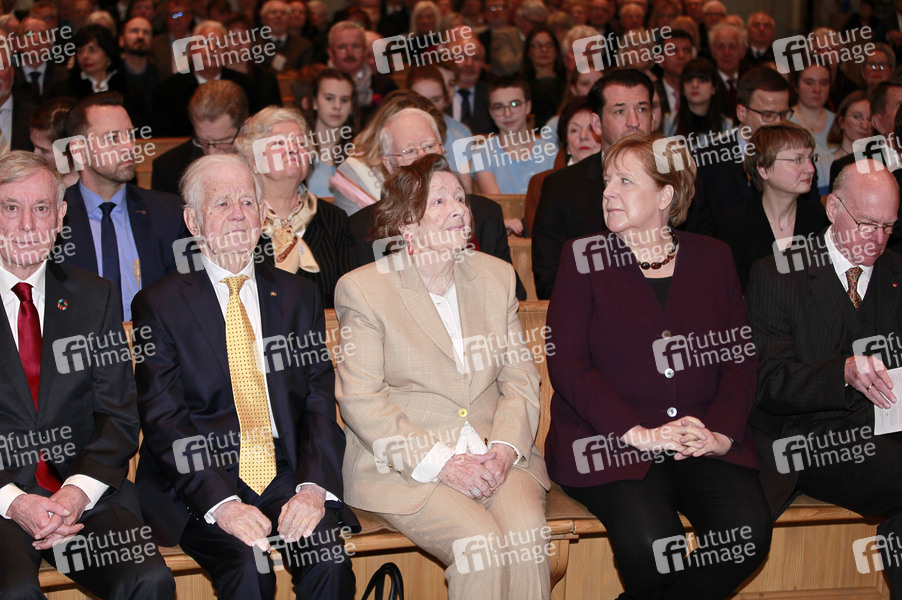 Horst Köhler, Kurt Biedenkopf, Ingrid Biedenkopf, Angela Merkel und Norbert Lammert bei der Festveranstaltung '30 Jahre Friedliche Revolution und Neugründung des Freistaates Sachsen - 90 Jahre Kurt Biedenkopf' in der Frauenkirche. Dresden, 28.01.2020