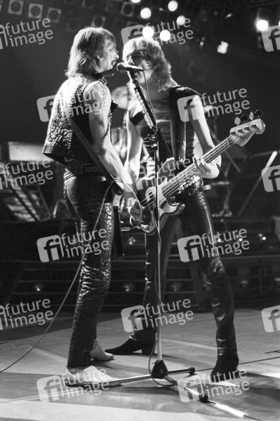 Rudolf Schenker und Francis Buchholz von den Scorpions live im Hammersmith Odeon. London, 01.02.1984