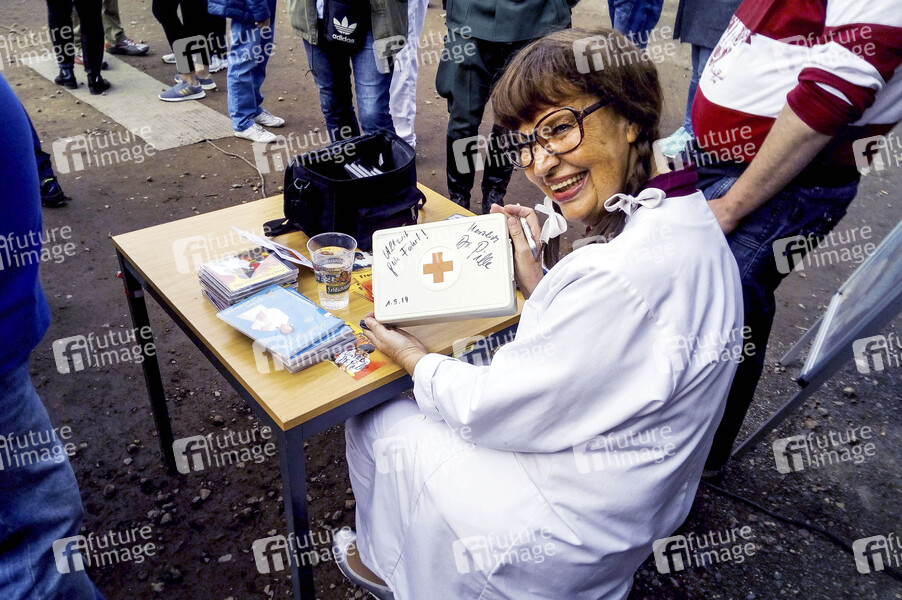 Urte Blankenstein als Frau Puppendoktor Pille beim Familientag vom DDR Museum Pirna. Pirna, 01.05.2019