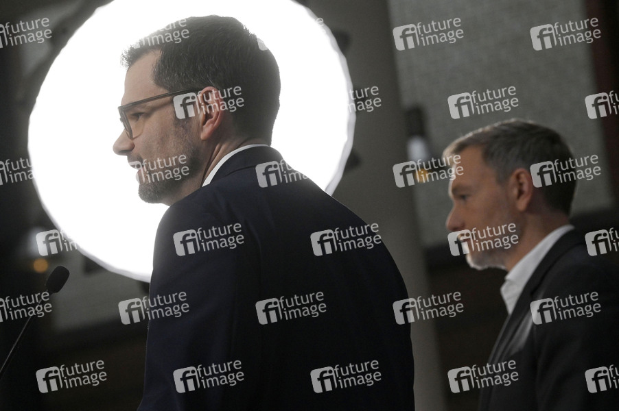 Marco Buschmann und Christian Lindner bei der Presseskonferenz der FDP zur Vorstellung des neuen Generalsekretärs Marco Buschmann im Hans-Dietrich-Genscher-Haus. Berlin, 02.12.2024