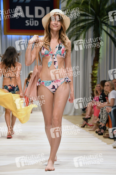 Model bei der Fashion Show der neuen Damen Beachwear Kollektion 2019 von ALDI Süd im Haus der Kunst. München, 28.05.2019