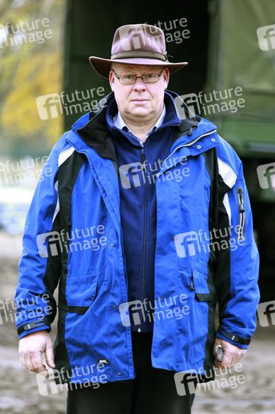 Dr. Andreas Cramer beim Pressetermin zum Bau eines festen Zauns an der Restriktionszone zur Eindämmung der Afrikanischen Schweinepest im Truppenlager Werdeck. Krauschwitz, 11.11.2020