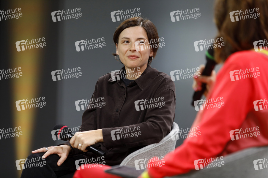 Dorothee Elmiger, Gewinnerin des Deutschen Buchpreises, auf der Literaturbühne von ARD, ZDF und 3sat bei der 77. Frankfurter Buchmesse 2025 auf dem Messegelände. Frankfurt am Main, 15.10.2025