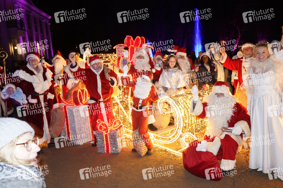 35 Weihnachtsmänner und Engel bei der Weihnachtsmannvollversammlung der Berliner Weihnachtsmannzentrale bei 'Weihnachten im Tierpark' im Tierpark. Berlin, 01.12.2019