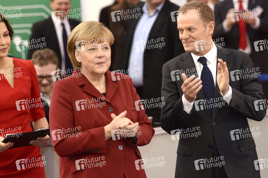 Politikerin, Bundeskanzlerin der Bundesrepublik Deutschland, CDU, Politiker, Ministerpräsident von Polen, PO, Computermesse, Centrum der Büro- und Informationstechnik, Messe, Büroautomation, Informationstechnologie, Telekommunikation, Computertechnik, Computer Expo