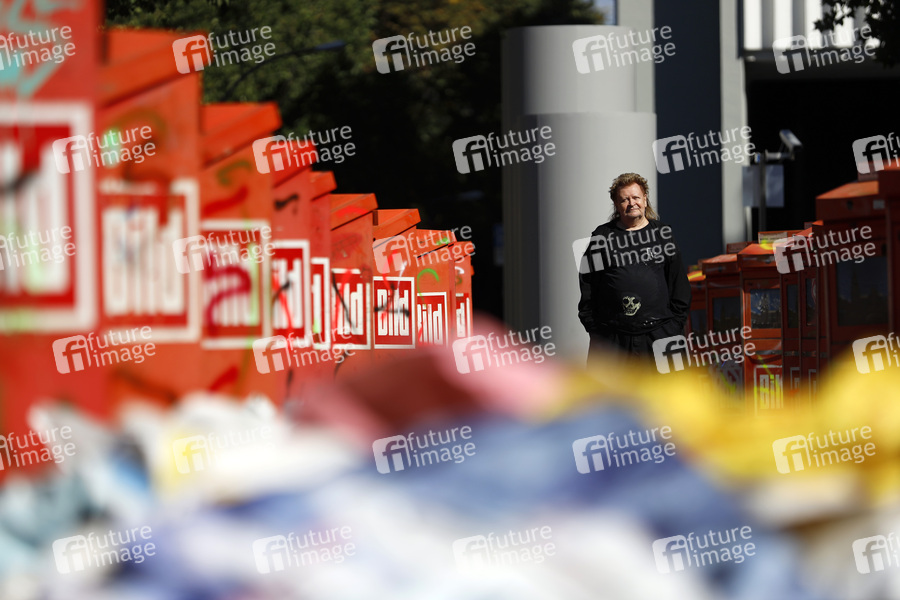 Künstler, Aktionskünstler, Kunst, Aktionskunst, Objektkunst, Trash People, Bild-Zeitung, BILD, Boulevardzeitung, Presse, Zeitung, Zeitungskasten, Zeitungskästen, Bild-Kästen, Druckerzeugnis, Papierzeitalter, Medien, Digitalisierung, Medienwandel, Yellow Press, Boulevard, Tageszeitung