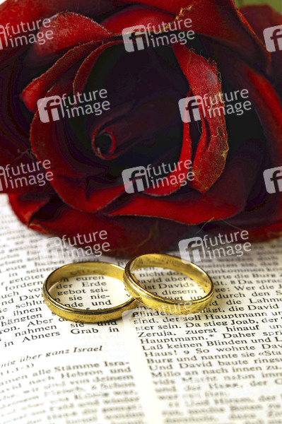 Scmuck, Fingerring, Eheringe, Trauring, Trauringe, Hochzeitsring. Hochzeitsringe, Ringfinger, Bindung, Brauch, Ehe, Ehestand, Eheschließung, Ehepartner, Eheleute, Ehepaar, Ehegatten, Hochzeit, Heirat, standesamtliche Trauung, kirchliche Traunung, Vermählung, Eheschließung, Standesamt, Kirche, Bibel, Rose, Symbolbild, Themenbild