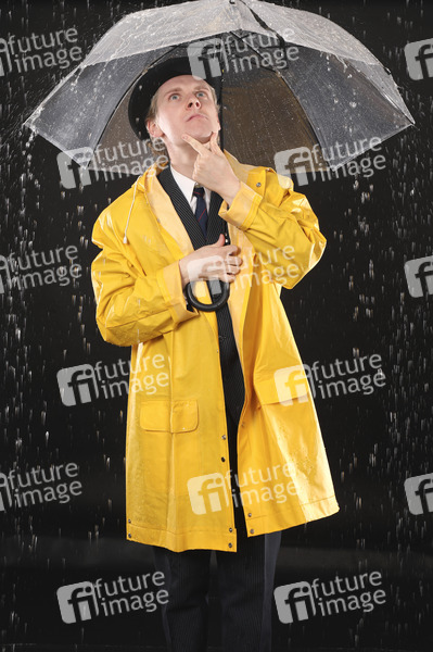 Fotoshooting, Unterhaltung, Entertainment, Kultur, Singin' in the Rain, Singing in the Rain, Musical, Regen, Wetter, Regenschauer, Nieselregen, Platzregen, Niederschlag, Gewitter, Wasser, Wetterprognose, Wettervorhersage, Regenschirn, Schirm, Regenjacke, Südwester, Regenkleidung, Regenwetter, Symbolbild, Symbolfoto
