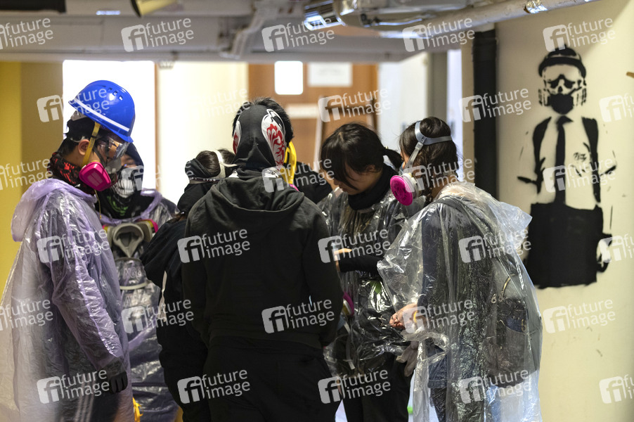 Polytechnische Universität Hongkong, Streik, Protest gegen Regierung, Hong Kong Proteste, Massenbewegung, Politik, Demo, Demonstration, Demonstrationen, Demonstranten, Maskierung, Vermummung, Gewalt, Protestaktionen, China, Unruhen, Kämpfe, Hong Kong Polytechnic University