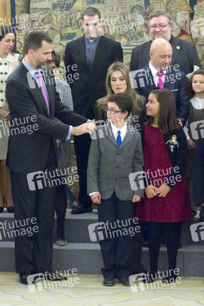 Audienz für die Gewinner des Kinderpreises eines Malwettbewerbs im Palacio de la Zarzuela, Madrid