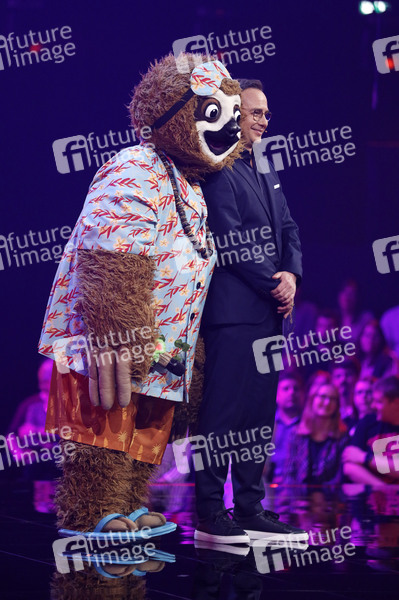 Matthias Opdenhövel und das Faultier in der 1. Live Show der 2. Staffel 'The Masked Singer' 2020 in den MMC Studios Köln-Ossendorf. Köln, 10.03.2020