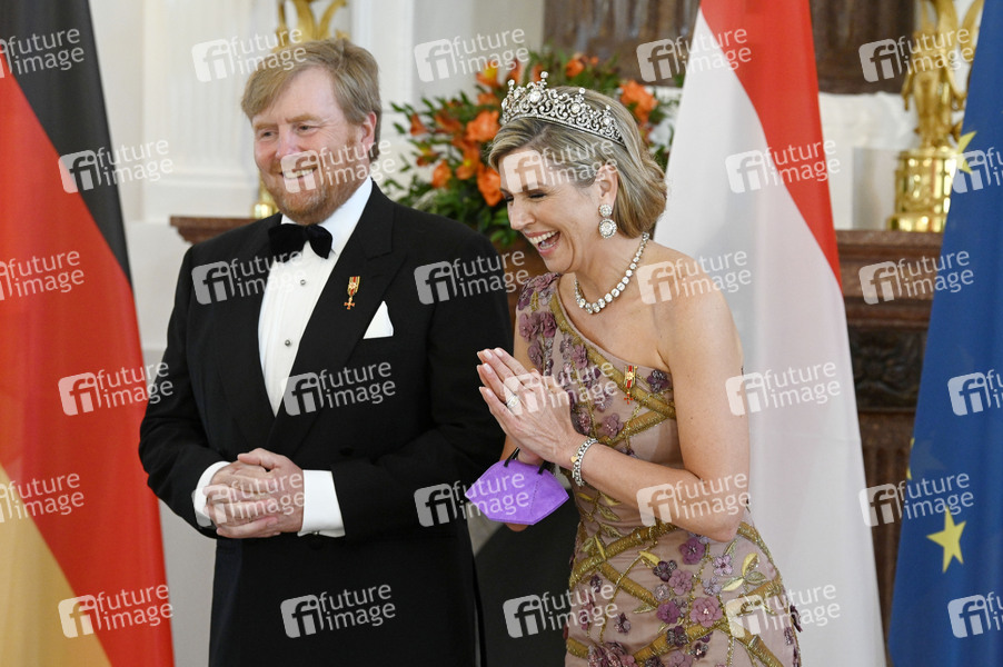 König Willem-Alexander und Königin Maxima der Niederlande beim Defilee zum Staatsbankett zu Ehren von König Willem-Alexander der Niederlande und Königin Maxima, gegeben vom Bundespräsidenten und Elke Büdenbender im Schloss Bellevue. Berlin, 05.07.2021