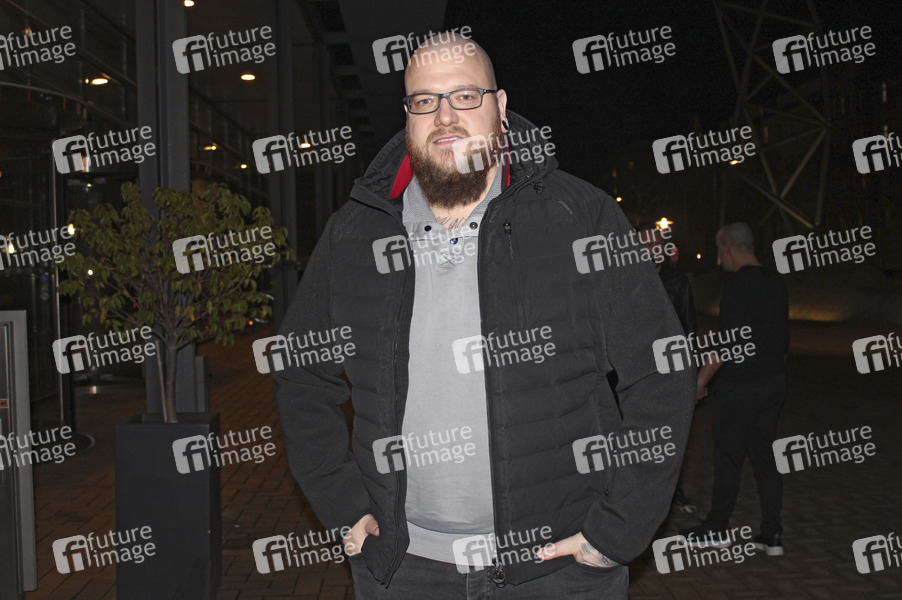 Pascal Bock (Goitzsche Front) nach der Aufzeichnung der MDR-Talkshow 'Riverboat' im Studio 3 der Media City Leipzig. Leipzig, 02.03.2023