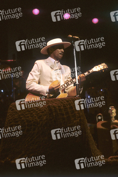 August Darnell von Kid Creole and the Coconuts live im Hammersmith Odeon. London, 19.09.1983