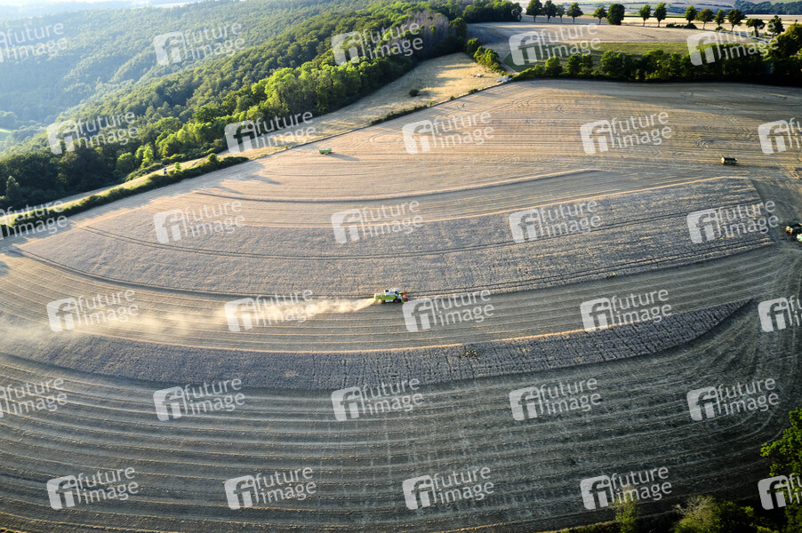 Luftbild, Luftaufnahme, Mähdrescher, Erntemaschine, Korn, Kornfeld, Vollkorn, Ähren, Halme, Feld, Landwirtschaft, Dürre, Trockenheit, Wasser, Regen, Grundwasser, Wasserknappheit, Grundwasserspiegel, Grundwasserpegel, Trockenphase, Ernte, Ernten, Getreide, Landwirte, Bauern, Acker, Äcker, Weizen, Gerste, Roggen, Wheat, Rye, Barley, Körner, Triticale, Anbau, Bio, Dünger, Agrar, Agrarwirtschaft, Erntewetter, Ernteausfall, Ernteausfälle, Futterkrise, Missernte, Futter, Saat, Saatgut, Anbau, Fruchtbarkeit, Bauern, Bauernverband, Symbolbild, Symbolfoto