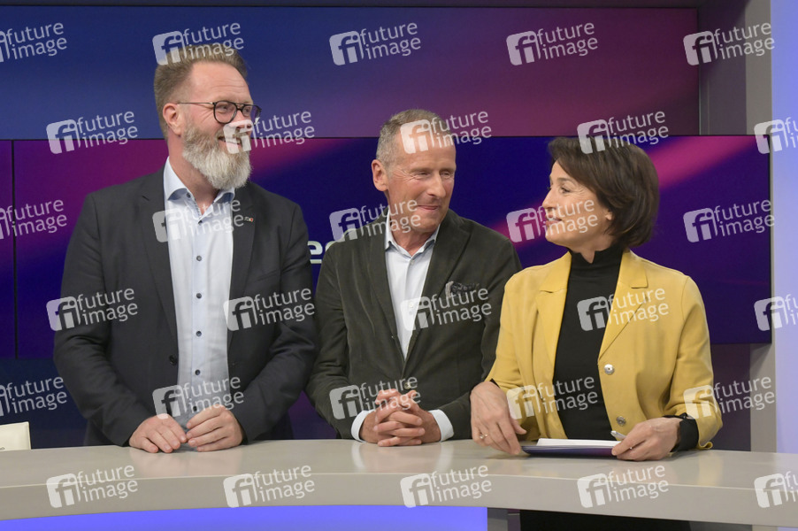 Claus Ruhe Madsen, Herbert Diess und Sandra Maischberger in der ARD-Talkshow 'maischberger' im Studio Berlin Adlershof. Berlin, 17.03.,2026