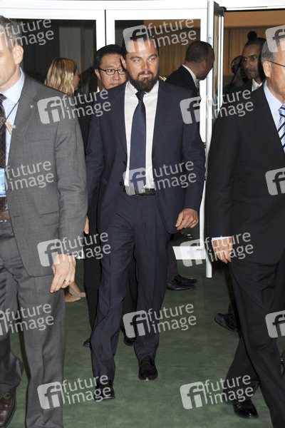 Leonardo DiCaprio bei der Ernennung zum UN-Botschafter des Friedens durch UN-Generalsekretär Ban Ki-moon im Hauptquartier der Vereinten Nationene. New York, 20.09.2014