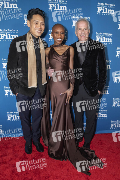 Jon M. Chu, Cynthia Erivo und Marc E. Platt bei der 18. Verleihung des Kirk Douglas Award for Excellence in Film auf dem 41. Santa Barbara International Film Festival im Hotel Ritz-Carlton Bacara. Santa Barbara, 04.12.2025