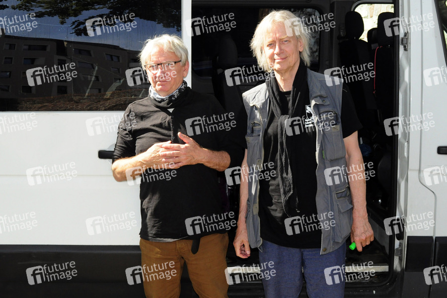 Funky K. Götzner und Kai Sichtermann von Ton Steine Scherben bei der Ankunft zum Konzert im Moritzburggraben. Halle/Saale, 01.08.2020