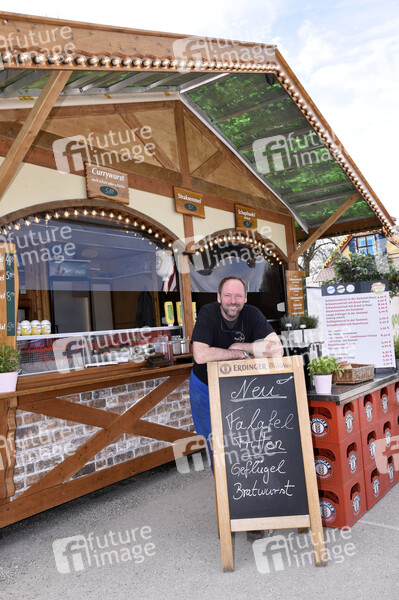 Peter Lingnau (Fisch-Bäda Wiesnstadl) beim Frühlings Drive In auf dem Volksfestplatz. Sowohl die Stadt Erding als auch das Landratsamt haben Das Frühlingsfest To Go genehmigt, die Veranstalter haben ein sicheres Hygienekonzept vorgelegt. Der Frühlings Drive In hat vom 9. April bis einschließlich 18. April 2021 täglich in der Zeit von 11-20 Uhr geöffnet. Insgesamt gibt es sechs Buden. Die Besucher können mit dem Pkw, LKW, Mofa oder Motorrad durchfahren und sich alle Volksfest Leckereien zum mitnehmen bestellen. Das Befahren des Geländes ist derzeit alleine, zu zweit oder mit Personen aus zwei verschiedenen Haushalten zulässig. (Quelle: charivari.de) Erding, 11.04.2021