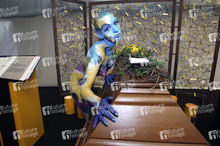 Bodypainting, Erotik, Frau, nackt, drinnen, weiblich, Sarg, erotic, woman, nude, indoor, female, coffin, casket