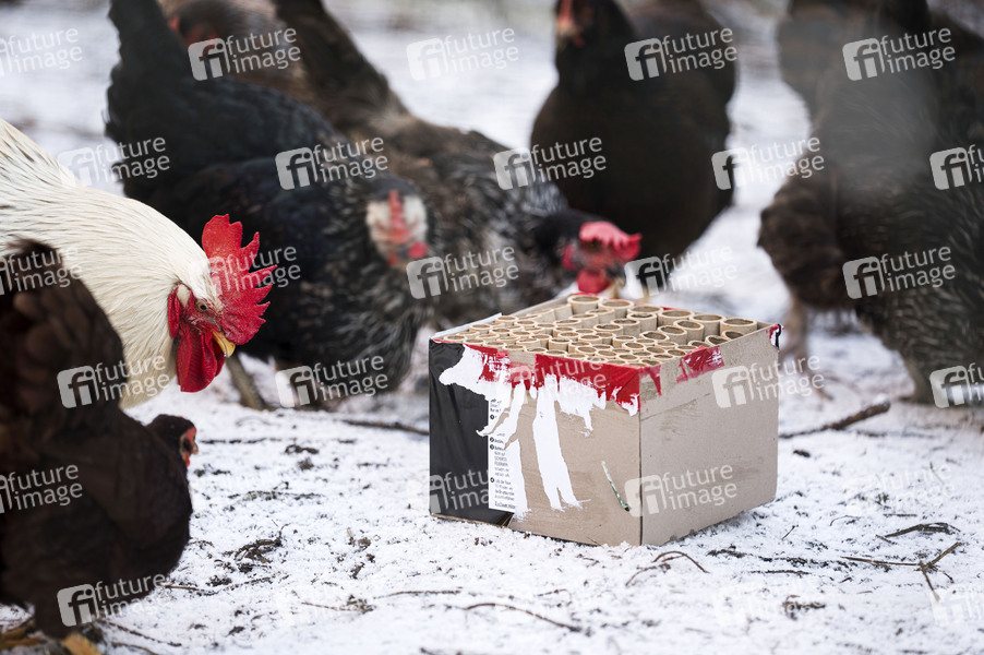 Neujahrsnacht, Silvester, Silvesternacht, Jahreswechsel, Tradition, Feuerwerk, Feinstaub, Feinstaubwerte, Unweltverschmutzung, CO2, Höhenfeuerwerk, Feuerwerker, Pyrotechnik, Großfeuerwerk, Raketen, Silvesterraketen, Böller, Feuerwerk-Show, Feuerwerk-Spektakel, Nachthimmel, Feuerwerkskörper, Frohes Neues Jahr, Feuerwerksbatterie, Feuerwerkskörper, Knallköprer, Luftverschmutzung, Pyrotechnik, Silvesterböller, Silvesterfeuerwerk, Müll, Müllbeseitigung, Müllabfuhr, Straßenreinigung, Stadtreinigung, Sauberkeit, Feuerwerksreste, Abfallbehandlung, Hühner, Symbolfoto, Symbolbild