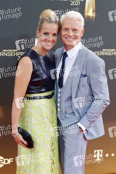 Guido Cantz mit Ehefrau Kerstin Ricker bei der Verleihung des Deutschen Fernsehpreises 2021 im Tanzbrunnen. Köln, 16.09.2021