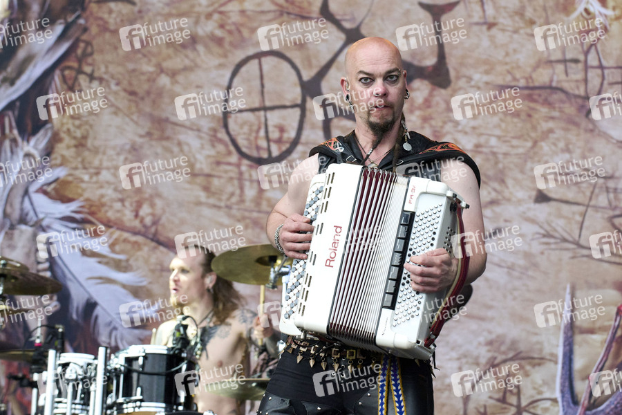 Samuli Mikkonen und Sami Perttula von Korpiklaani live auf dem Summerside Festival 2024 beim Flugplatz. Grenchen, 21.06.2024