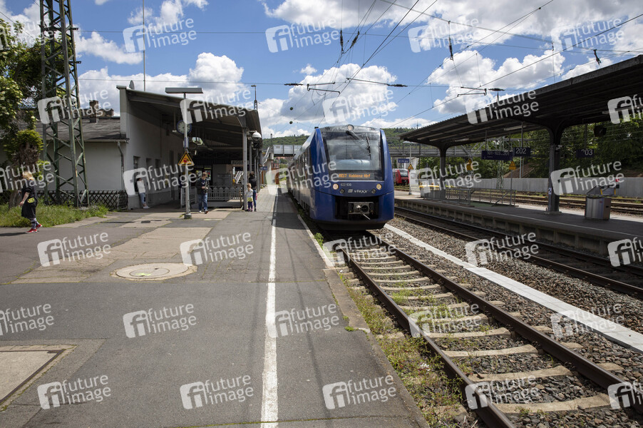 Bingen (Rhein) Hauptbahnhof als Fernverkehrsbahnfof in Rheinland-Pfalz ist ein Inselbahnhof und zugleich Durchgangsbahnhof für Intercity-, Eurocity-, Regionalexpress- und Regionalbahnzüge. Bingen, 31.05.2021