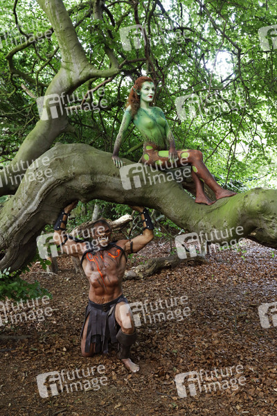 Bodypainting, Body-Painting, Farbkörper, Make-up, Latexappliaktionen, Latexteile, Maskenbildner, Maskenbildnerei, Cosplay, Cosplayer, nackt, Akt, Körperkunst, Körperfarben, Farbe, Bemalung, Kunst, Malerei, Fantasy, Märchen, Wald, Buchen, Buchenwald, Bäume, Natur, Waldfee, Fee, Troll, Fantastic, draußen, body painting, nude, body art, colors, fairy tale, trees, forest, nature, beech, outdoors