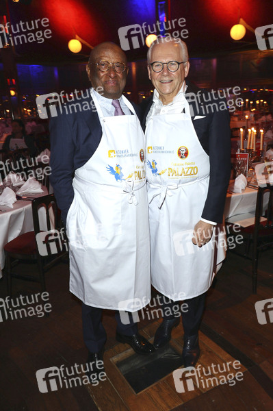 Ian Karan und Rüdiger Grube beim Charity-Abend zugunsten des Altonaer Kinderkrankenhauses (AKK) in Cornelia Polettos Palazzo. Hamburg, 28.02.2023