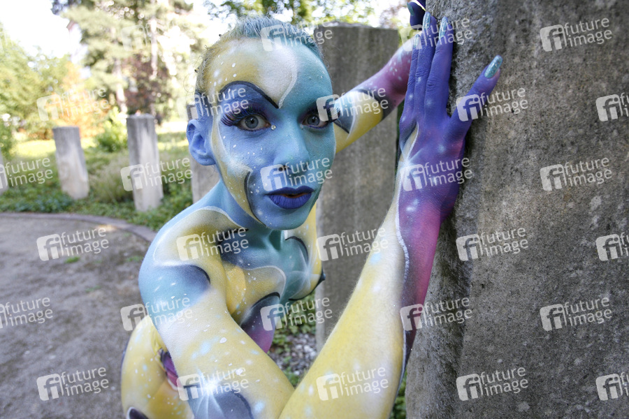 Bodypainting, Erotik, Frau, nackt, draußen, weiblich, Säulen, erotic, woman, nude, outdoor, female, columns