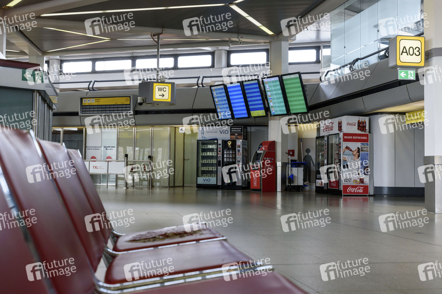Der Flughafen Tegel ist nahezu menschenleer. Aufgrund des massiven Passierrückgangs, wegen der Corona-Reisebeschränkungen, könnte der Flughafen vorübergehend stillgelegt werden.