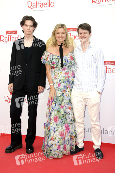 Carola Ferstl mit ihren Söhnen Georg Voglmaier und Leonard Voglmaier beim Raffaello Summer Day 2022 in der Königlichen Porzellan-Manufaktur. Berlin, 23.06.2022
