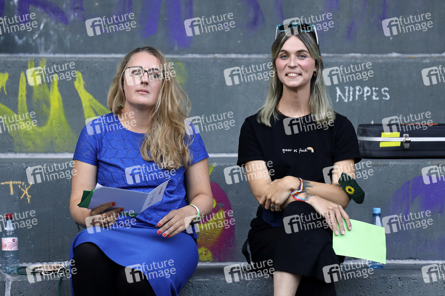Katharina Dröge und Nyke Slawik bei einer Wahlkampfveranstaltung von Bündnis 90/Die Grünen auf dem Wilhelmplatz. Köln, 02.09.2021