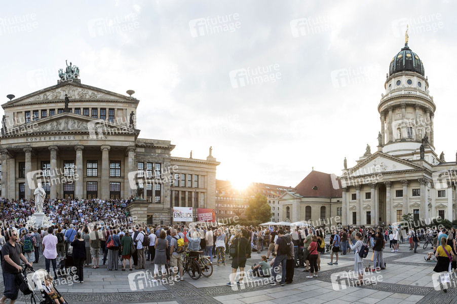 Singalong und Flashmob, hunderte Teilnehmer singen die 'Ode an die Freude' vor dem Konzerthaus auf dem Berliner Gendarmenmarkt im Rahmen der Fete de la Musique zur Sommersonnenwende. Berlin, 21.06.2019