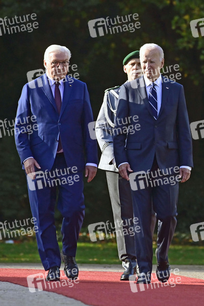 Frank-Walter Steinmeier und Joe Biden beim Empfang des amerikanischen Präsidenten mit militärischen Ehren und zum gemeinsamen Gespräch im Schloss Bellevue. Berlin, 18.10.2024