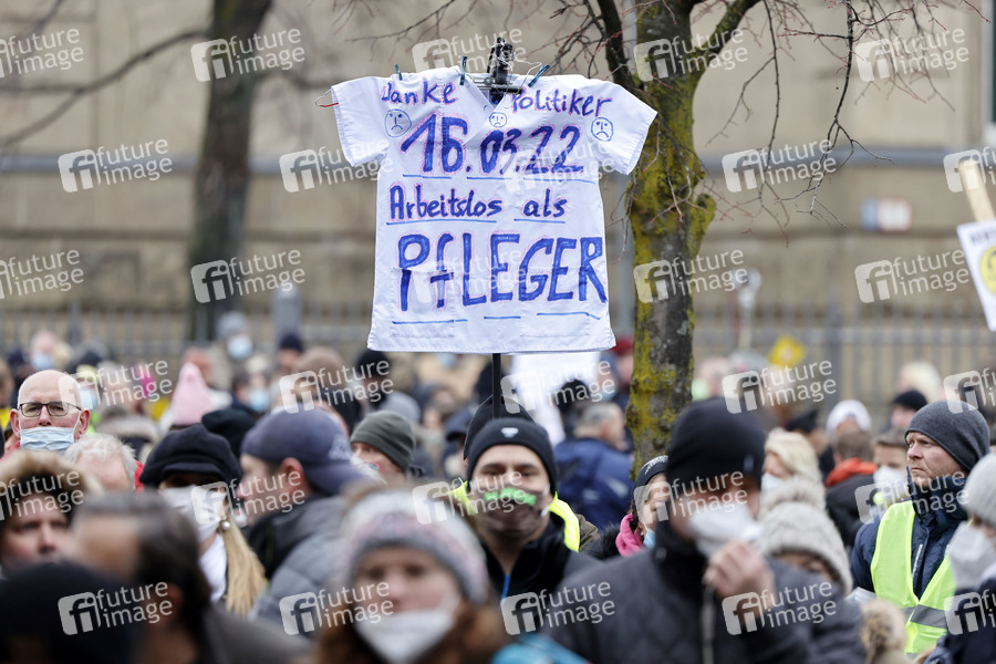 Bei einer angemeldeten Demo demonstrierten etwa 8000 Gegner einer Impfpflicht mit einem Spaziergang gegen die Corona-Maßnahmen der Bundesregierung - darunter auch viele Pflegekräfte, die wegen der Impfpflicht im Gesundheitsbereich ihren Job zu verlieren drohen. Düsseldorf, 15.01.2022
