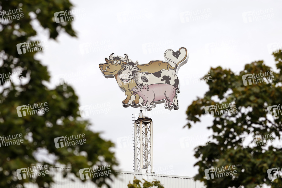 Logo der Lebensmittelfirma Tönnies am Hauptsitz in Rheda-Wiedenbrück. Der Fleisch-Konzern will die Schlacht- und Zerlegefirma Lazar übernehmen. Rheda-Wiedenbrück, 02.08.2020