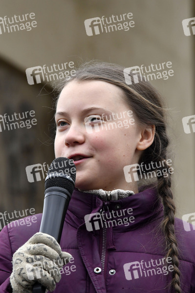 Klimaschutzaktivistin, Initiatorin der Schulstreiks für das Klima, Klima-Demonstration, Rede, Freitagsdemo, Schülerdemo, Schüler, Demonstration, Demonstranten, Demo, Kundgebung, Protest, Aktion, Banner, Parolen, Politik, Klimaschutz, Erderwärmung, Klimakrise, Klimawandel