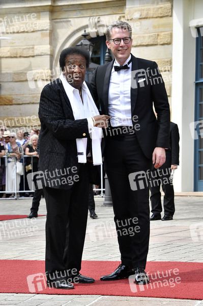 Roberto Blanco und Markus Blume bei der Eröffnung der 112. Richard-Wagner-Festspiele 2024 mit der Neuinszenierung von 'Tristan und Isolde' im Bayreuther Festspielhaus. Bayreuth, 25.07.2024