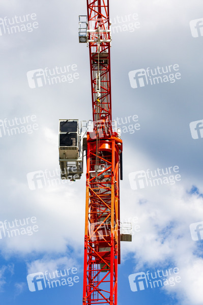 Kran, Turmkran, Turmkräne, Hebemaschine, Turmdrehkran, Obendreherkran, Krantechnik, Kranvermietung, Kranzubehör, Baukanhandel, Krananstrich, Kranfarbe, Baustelle, Hochbau, Hochbaukrane, Tiefbau, Fachwerkträger, Drehkranz, Vorderer Auslager, hinterer Ausleger, Katzausleger, Nadelausleger, Turmkrankonstruktion, Wolffkran, Baumaschinen, Baumaschienenhersteller, Kranhersteller, Turmspitze, Ballastgewicht, Gegenausleger, Traglast, Widerlager, Aufstellfläche, Bodenplatte, Betongewichte, Stahlrohrkonstruktion, Lastmoment, Krankomponenten, Fundamentanker, Turmabspannung, Innenkletterleiter, Kranfahrer, Kranführer, Krankanzel, Steuerkanzel, Wirtschaft, Bau, Symbolbild, Symbolfoto