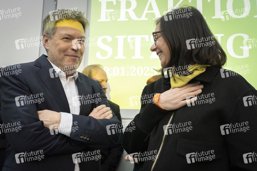 Robert Habeck und Katrin Göring-Eckardt bei der Fraktionssitzung der Bündnis 90/Die Grünen-Bundestagsfraktion im Reichstagsgebäude. Berlin, 10.02.2025