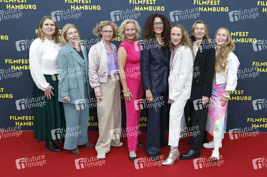 Melanie Adler, Christine Wilhelmi, Julia Weden, Iris von Kluge, Malika Rabahallah, Marion Gretchen Schmitz, Charlotte Chrome und Verena Wolfien bei der Festivaleröffnung mit der Premiere des Kinofilms 'Lovely Day / Mille secrets, mille dangers' auf dem 33. Filmfest Hamburg 2025 im Cinemaxx Dammtor. Hamburg, 25.09.2025