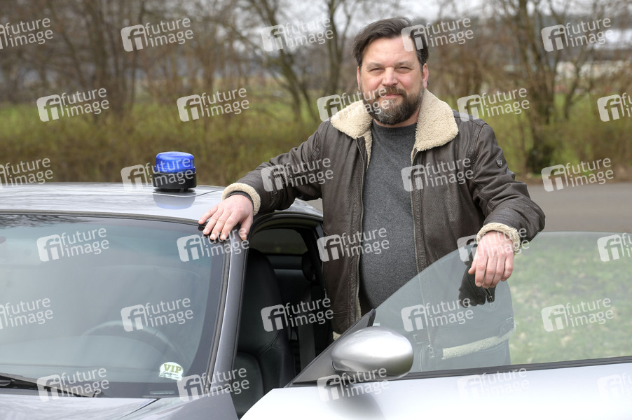 Sascha Gersak beim Fototermin am Set der ARD-Serie 'Finsteres Herz - Die Toten von Marnow 2' (AT) am Hornweg. Kleinburgwedel, 06.03.2024
