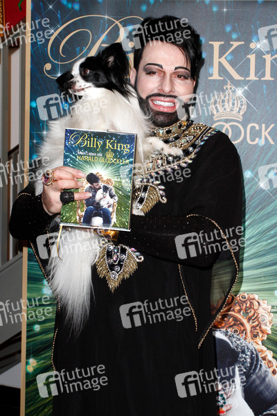 Hund Billy King und Harald Gloeoeckler bei der Buchvorstellung 'Billy King - mein Leben mit Harald Glööckler'. Berlin, 28.02.2013