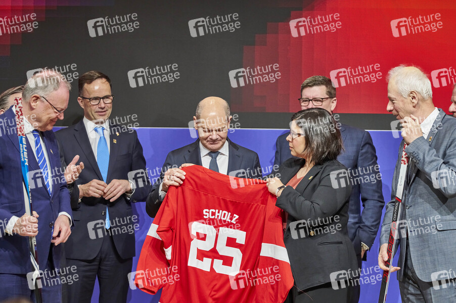 Deutsche Messe AG, Hannover Messe Industrie, Weltleitmesse der Industrie, Industriemesse, Industrieschau, Automatisierung, IT-Sicherheit, KI, Technologie, Wirtschaft, Ausstellung, Fair, Messe, Eröffnung, Opening, Leitmesse, Synergie und Kooperation, Wasserstoff & Brennstoffzellen, CO2-neutrale Produktion, Energizing a Sustainable Industry, Künstliche Intelligenz, Partnerland Kanada, Politiker, Vorsitzender des Vorstandes der Deutschen Messe AG Wirtschaftsvertreter aus Kanada