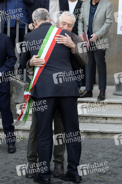 Robert de Niro und Roberto Gualtieri nach der Verleihung des Lupa Capitolina auf dem Kapitolsplatz. Rom, 06.11.2025